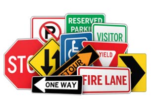 These gives you information about such things as high way facilities, parking facilities etc and you can recognise them from their blue backround.